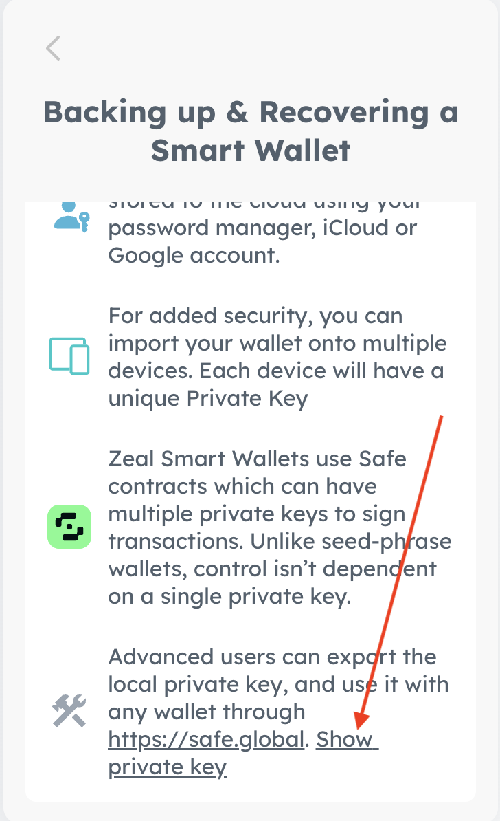 Zeal Smart Wallets use Safe 1.4.1 contracts. This means you can use Smart Wallets also without Zeal. N.b. this guide is for advanced users and involve exporting/import your very sensitive private key.